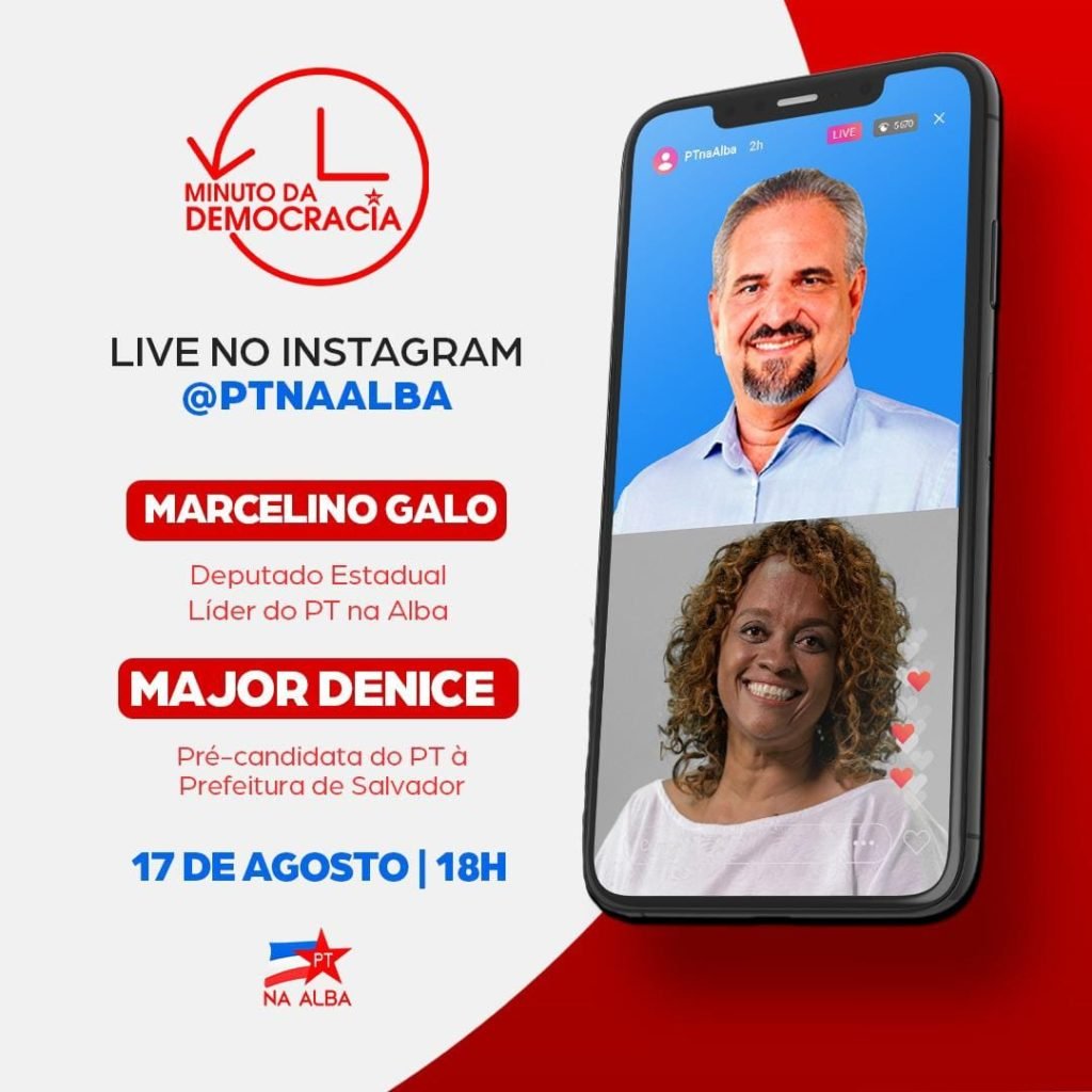 Minuto da Democracia recebe a pré-candidata à Prefeitura de Salvador, Major Denice, para um bate papo com o líder Marcelino Galo Assessoria PT na Alba / 22/08/2020