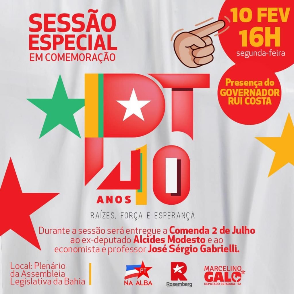 Artigo do Líder do PT na ALBA, Deputado Marcelino Galo, em homenagem aos 40 anos de fundação do PT Assessoria PT na Alba / 10/02/2020